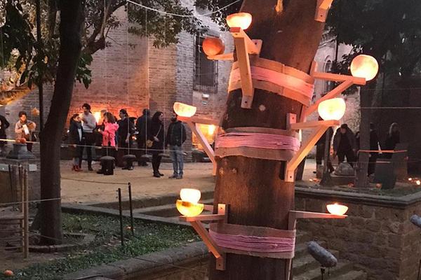 'Luces de barrio' ilumina lugares excepcionales de la ciudad. En 2019, el patrimonio cítrico fue puesto en valor a través de intervenciones de artistas y público que celebraron la noche más larga del año en el Espacio Santa Clara, entre la última tard